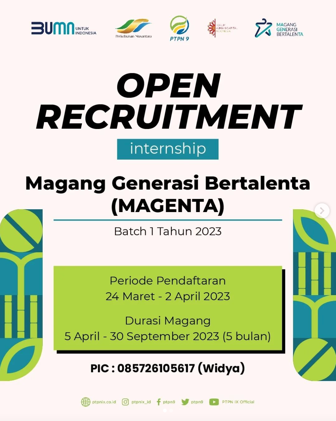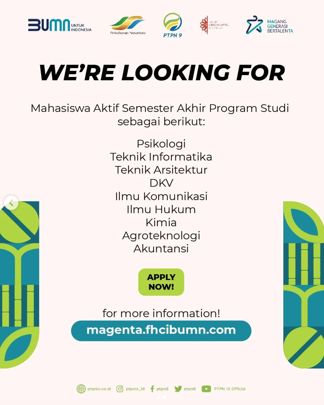 Berikut ini Informasi Lowongan Internship PT Perkebunan Nusantara IX