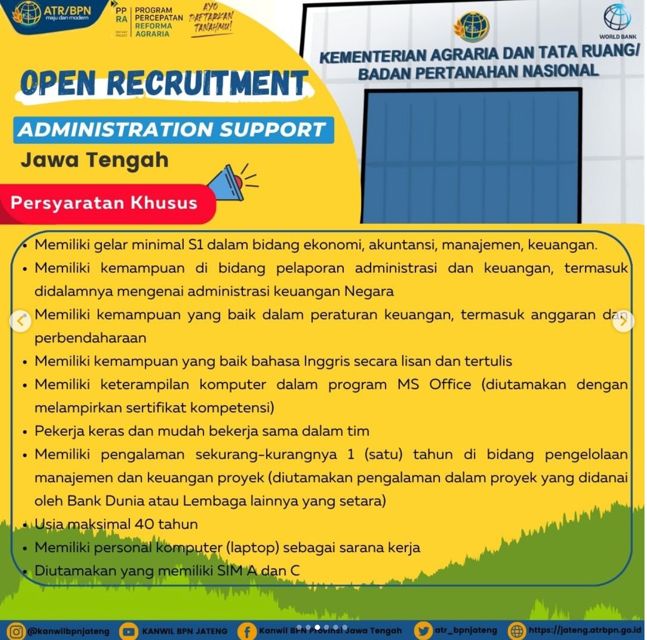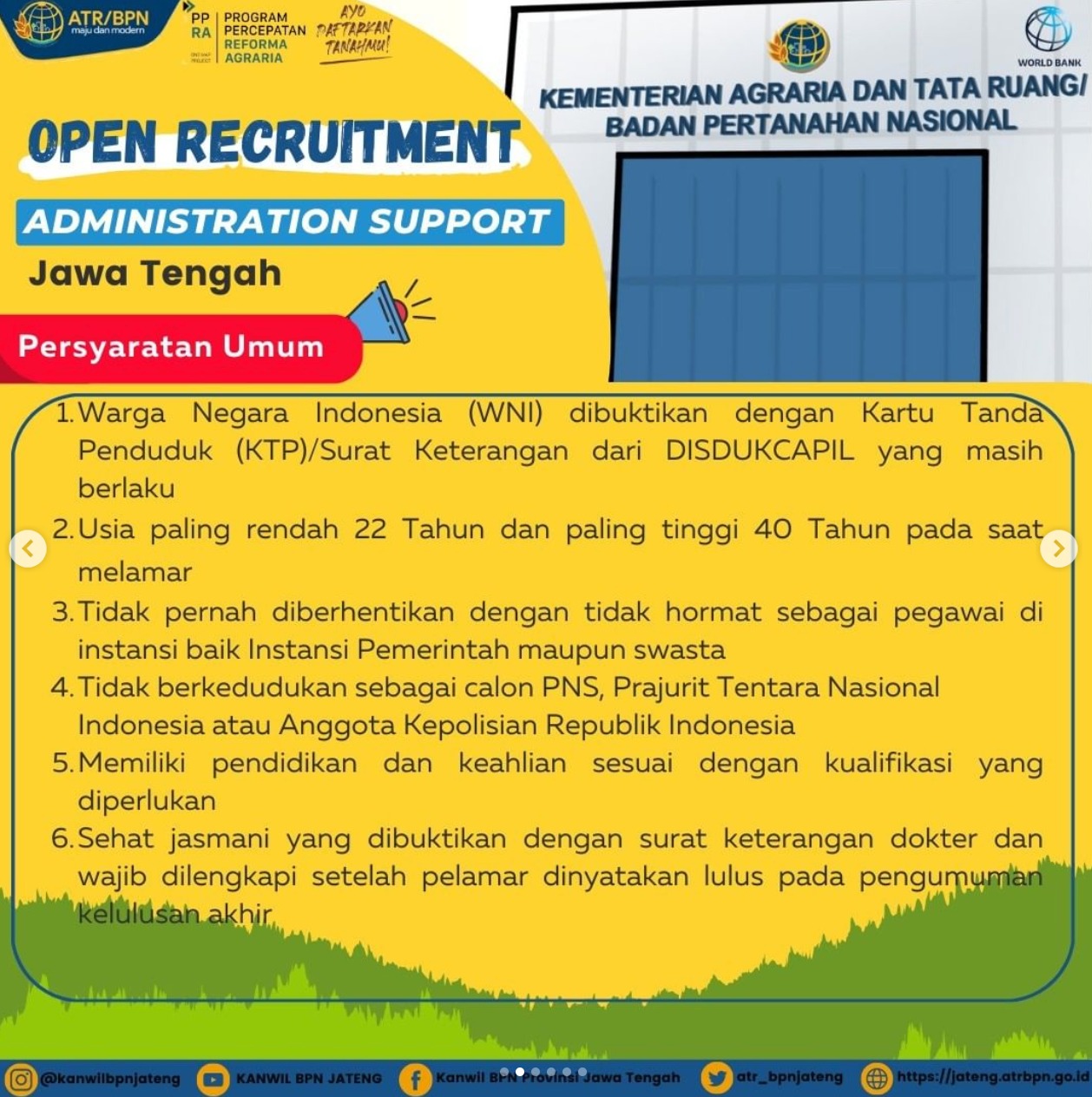 Lowongan Kerja Kanwil Badan Pertanahan Nasional Provinsi Jawa Tengah