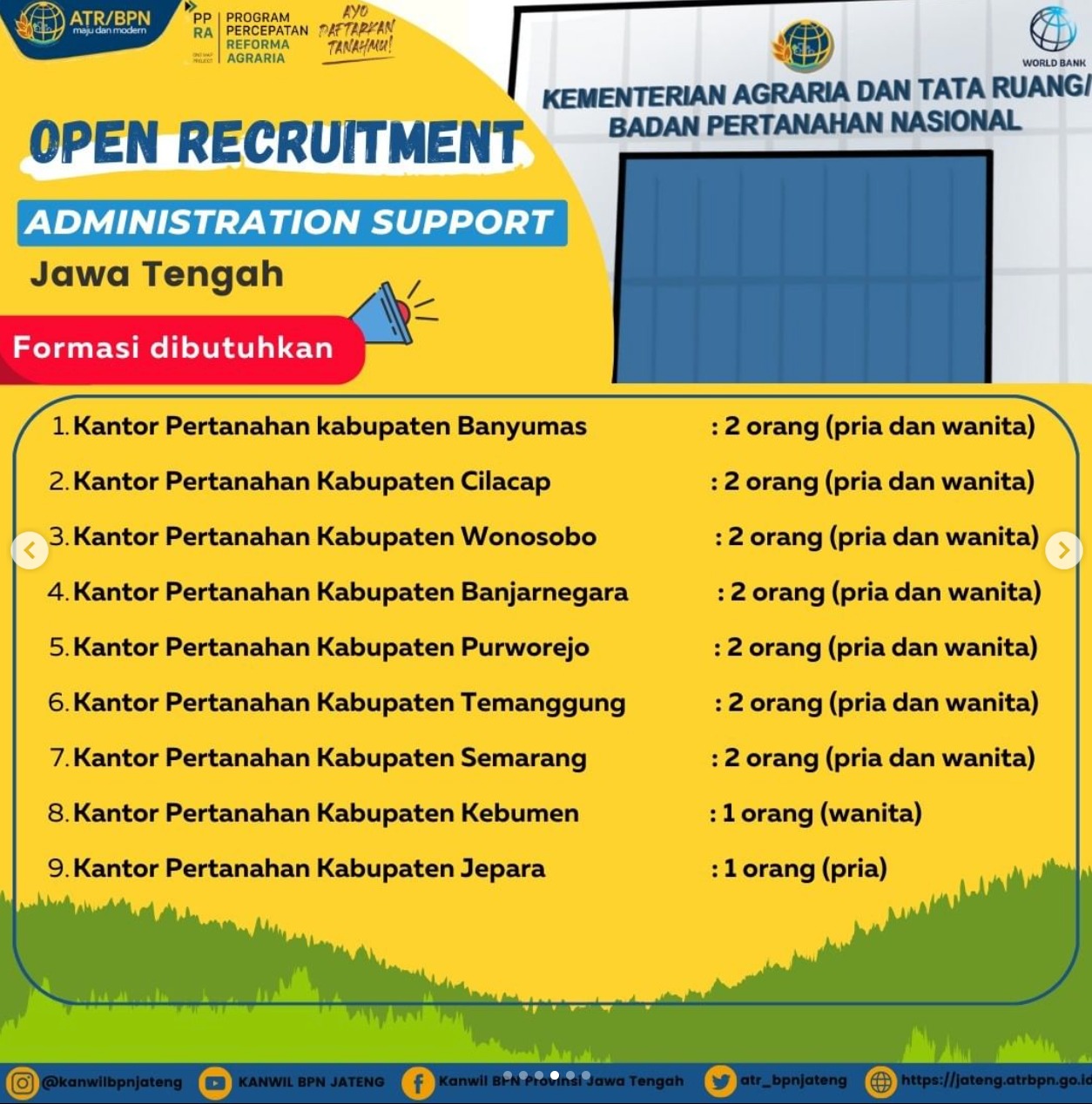 - Kantor Pertanahan Kabupaten Banjarnegara : 2 orang (pria dan wanita)
