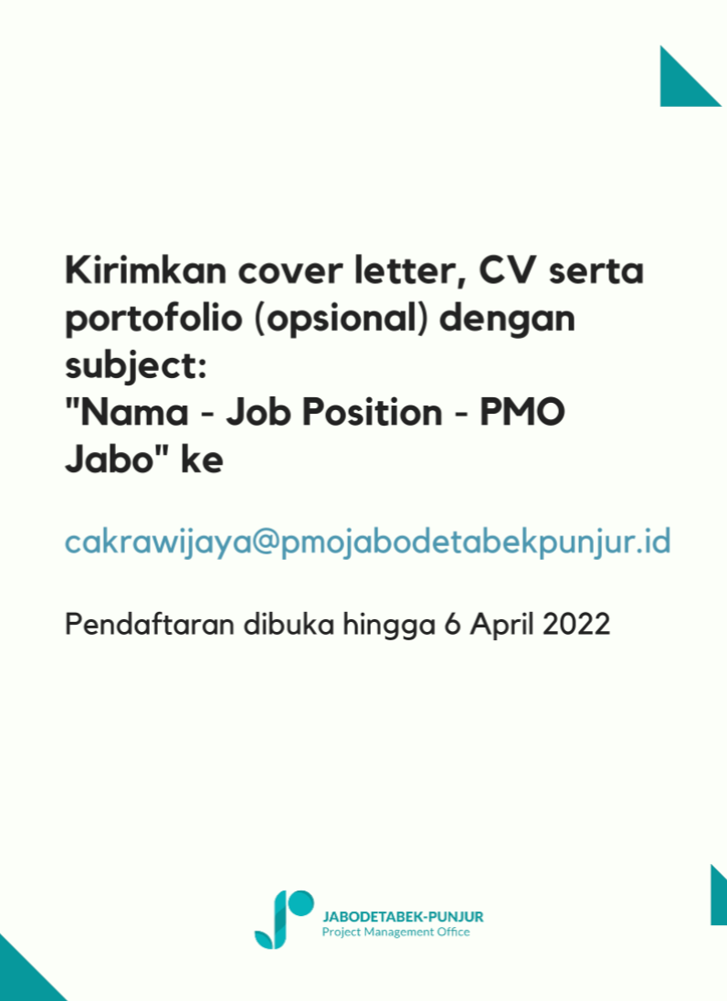 - cakrawijaya@pmojabodetabekpunjur.id Subject Email : Nama – “Job Position – PMO Jabo”