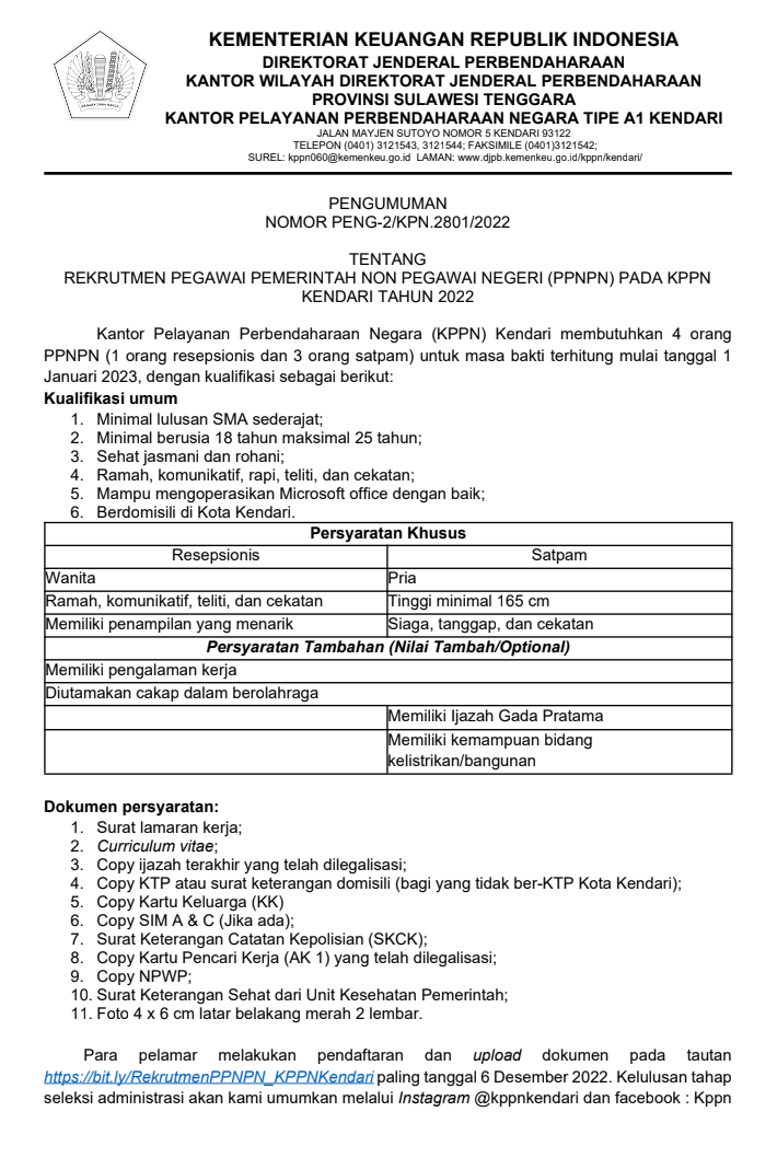 Penerimaaan Pegawai Pemerintah Non Pegawai Negeri Kantor Pelayanan Perbendaharaan Negara (KPPN)